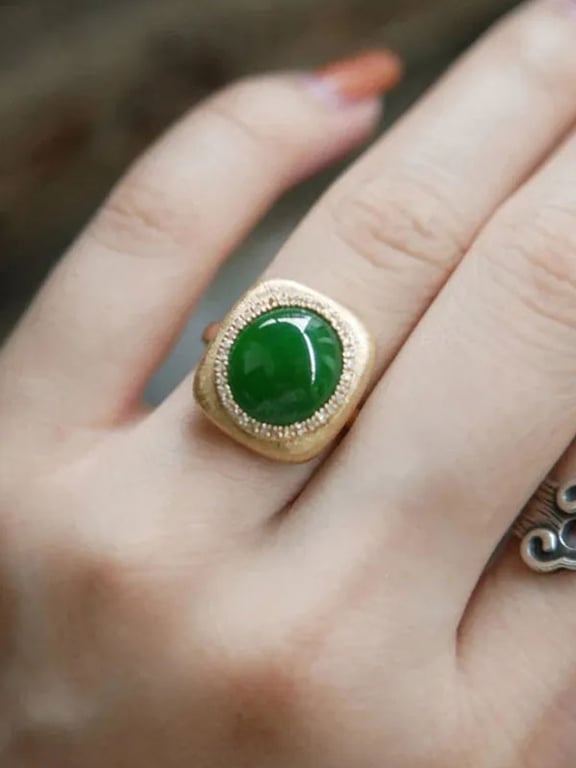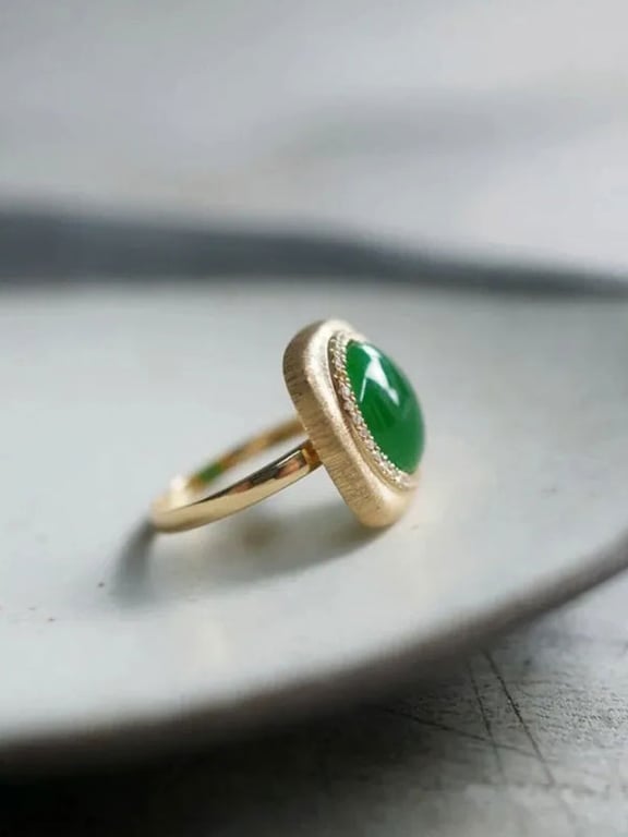 Ancient Gold Wire Drawing Crafts Natural Jade Chalcedony Vintage