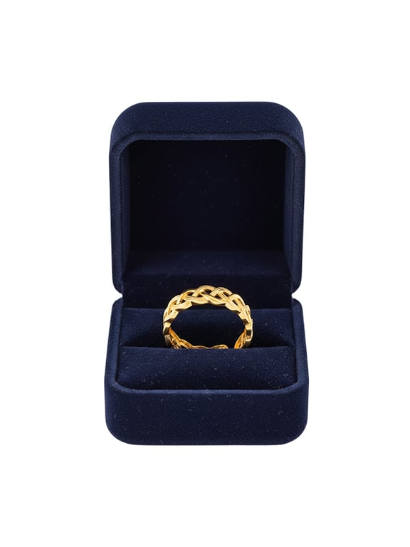 The defining feature of this lady's ring is its exquisite Woven Braided Texture. Unlike smooth bands, this artisanal detailing creates a dynamic, sculptural look that catches the light and adds a layer of sophisticated elegance to the hand. This texture perfectly aligns with modern fashion trends while honouring the time-tested beauty of pure gold.