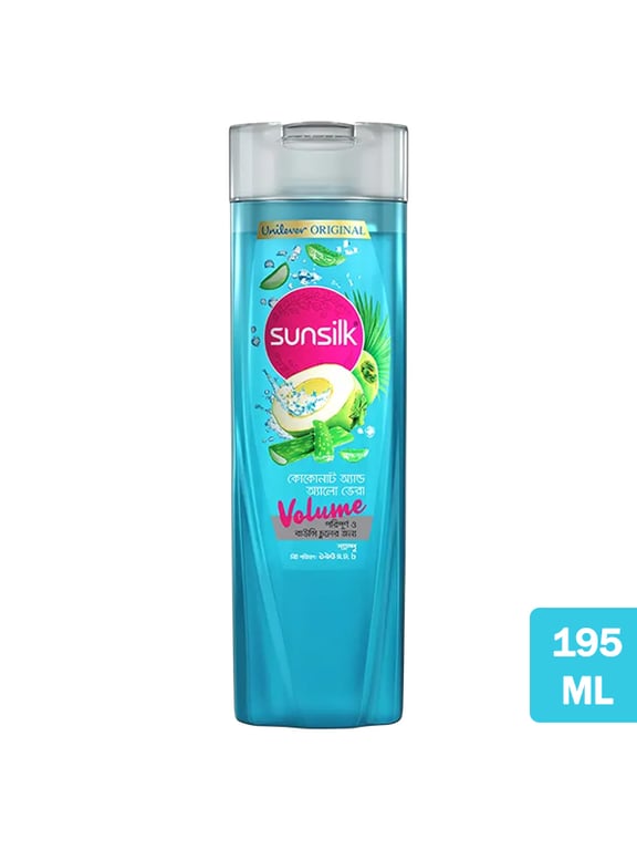 Sunsilk Coconut & Aloe Vera Shampoo (195ml) provides intense moisture. The formula deeply hydrates dry hair, boosting softness, smoothing the cuticle, and controlling frizz for silky, manageable hair that complements any fashion look.