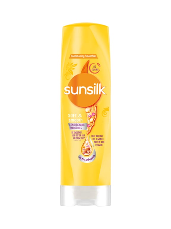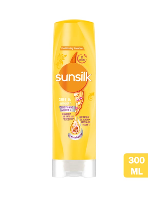 Sunsilk Soft & Smooth Conditioner (300ml) uses Almond Oil & Vitamin E for deep nourishment. It eliminates roughness, controls frizz, and leaves hair silky, soft, and pliable for elegant, touchable fashion styles. Ready for an amazing day.