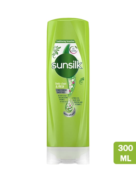 Sunsilk Lively Clean & Fresh Conditioner (300ml) uses Tea Tree Oil for lightweight conditioning. It detangles and smoothes without residue, boosting natural bounce and volume for hair that is fresh, soft, and ready for dynamic fashion styles.