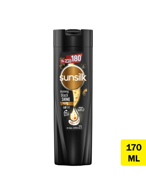 Sunsilk Stunning Black Shine Shampoo cleanses while dramatically enhancing dark hair. It smoothes the cuticle for a mirror-like gloss, intensifies colour depth, and ensures hair is vibrant, sleek, and perfectly. In an interesting size of (170ml).