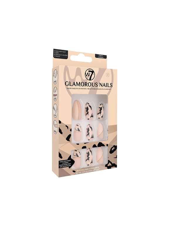 W7 Glamorous Press On Nails (Party Animal Nude/Black) deliver an instant, salon-quality manicure. The high-contrast, sophisticated design is durable and easy to apply, providing quick, smudge-free style changes perfect for a fashion-forward look.